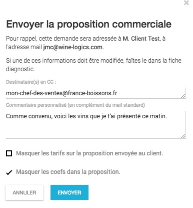 Dans l'onglet "proposition", cliquez sur le bouton "ENVOYER LA PROPOSITION" en bas à droite de l'écran.